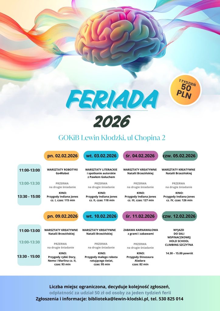 Od 19 do 29 stycznia 2026 prowadzimy nabór uczestników na nasze feryjne zajęcia FERIADA 2026.