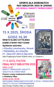 Noc Bibliotek w Lewinie 2025- Spotkania autorskie i oferta
